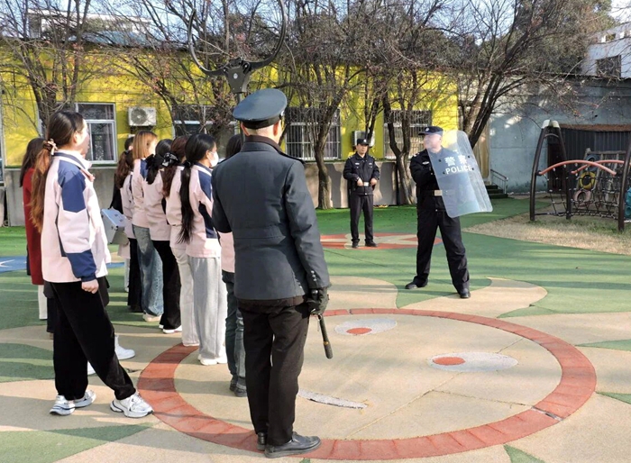 合阳公安金水派出所民警联合校方开展防暴应急培训教学。