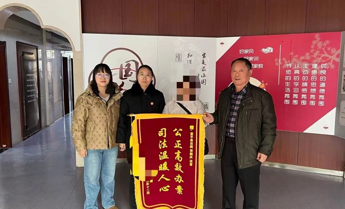 富平法院民三庭成功调解一起涉离婚情感纠葛的共有房产分割纠纷,当事人赠锦旗致谢。