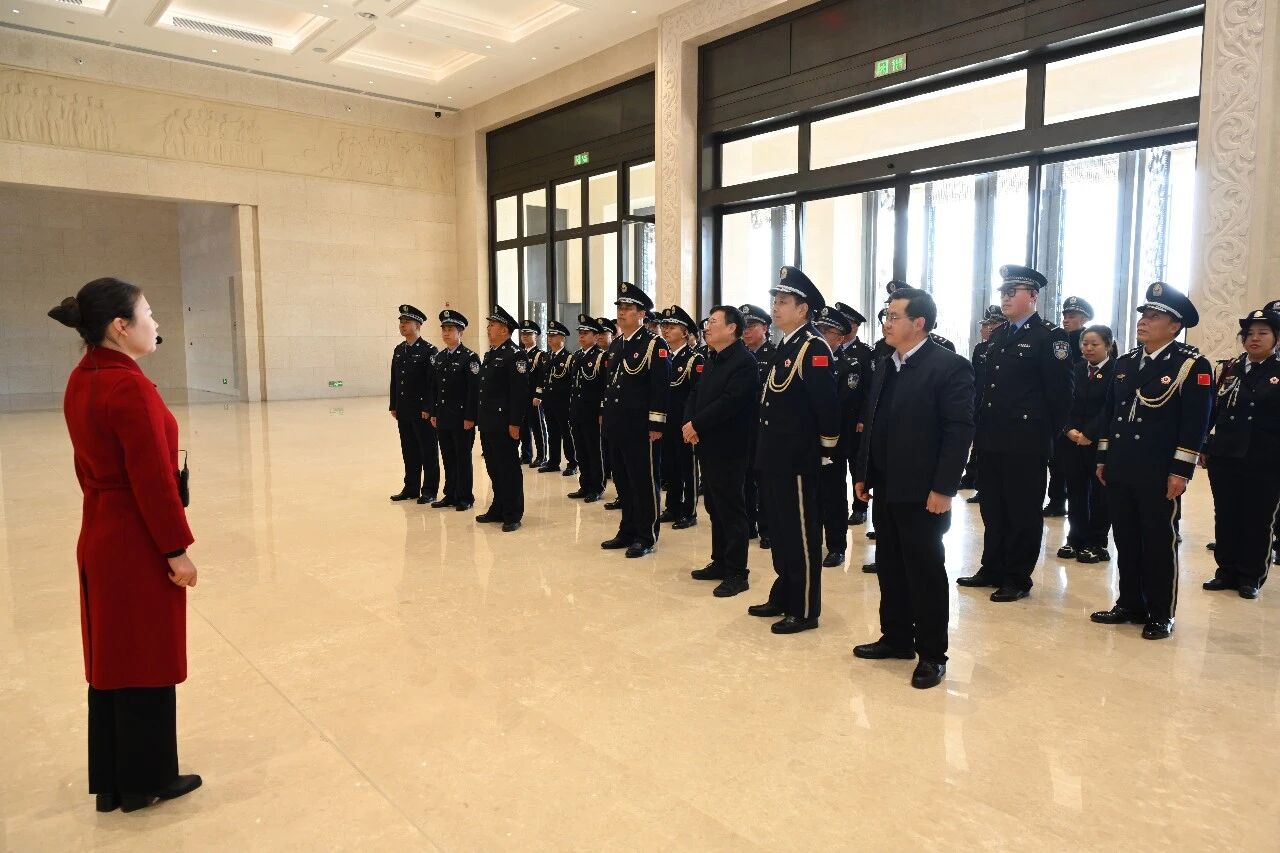 全市检察机关 50 余名司法警察身着警礼服,面向警旗庄严宣誓,“我是人民检察院司法警察,我宣誓,忠于中国共产党,忠于祖国,忠于人民……”铿锵有力的誓言,既是对初心使命的坚守,也是对责任担当的承诺,进一步坚定了全体司法警察队伍对党忠诚、服务人民、执法公正、纪律严明的政治信念。