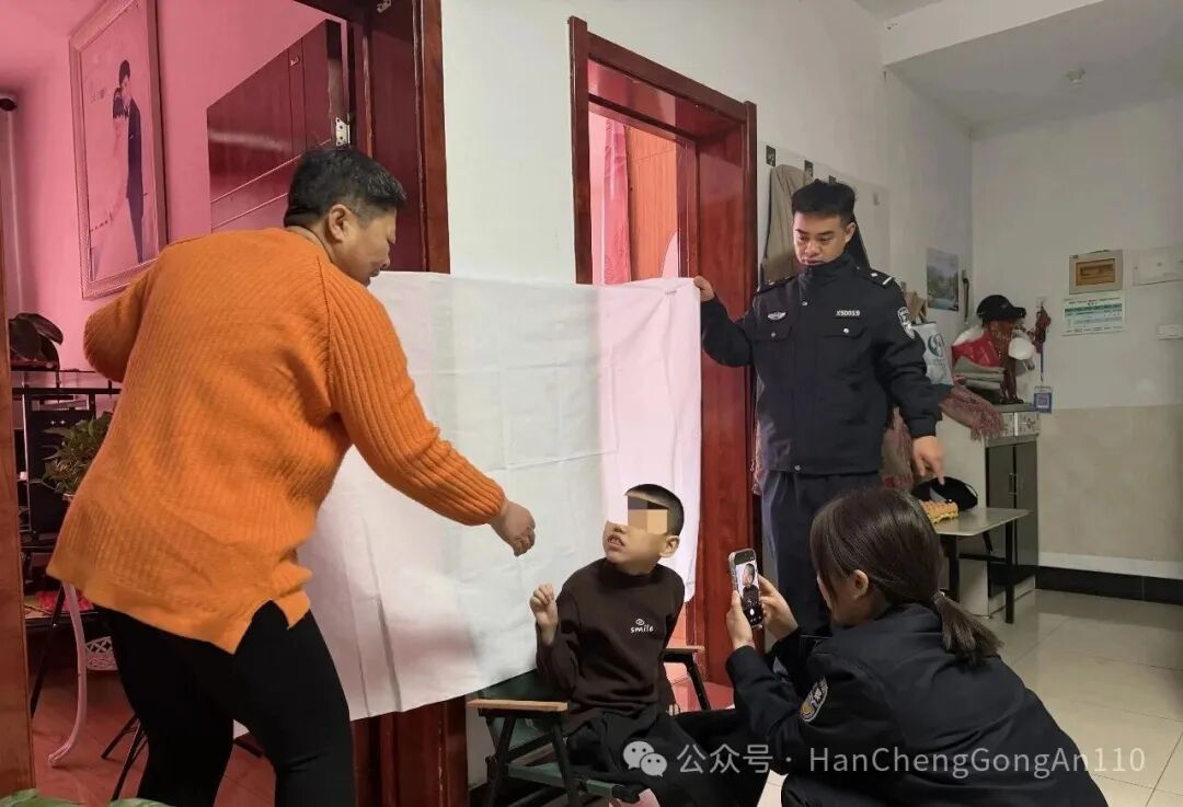 1月8日,韩城市公安局西庄派出所接到辖区群众求助,称家中一名患有脑瘫的儿童因身体原因无法正常抬头,身份证到期迟迟未能正常换领,给日常生活带来诸多不便,希望能得到派出所的帮助。了解情况后,户籍民警携带身份证采集设备,主动上门为孩子提供办证服务。