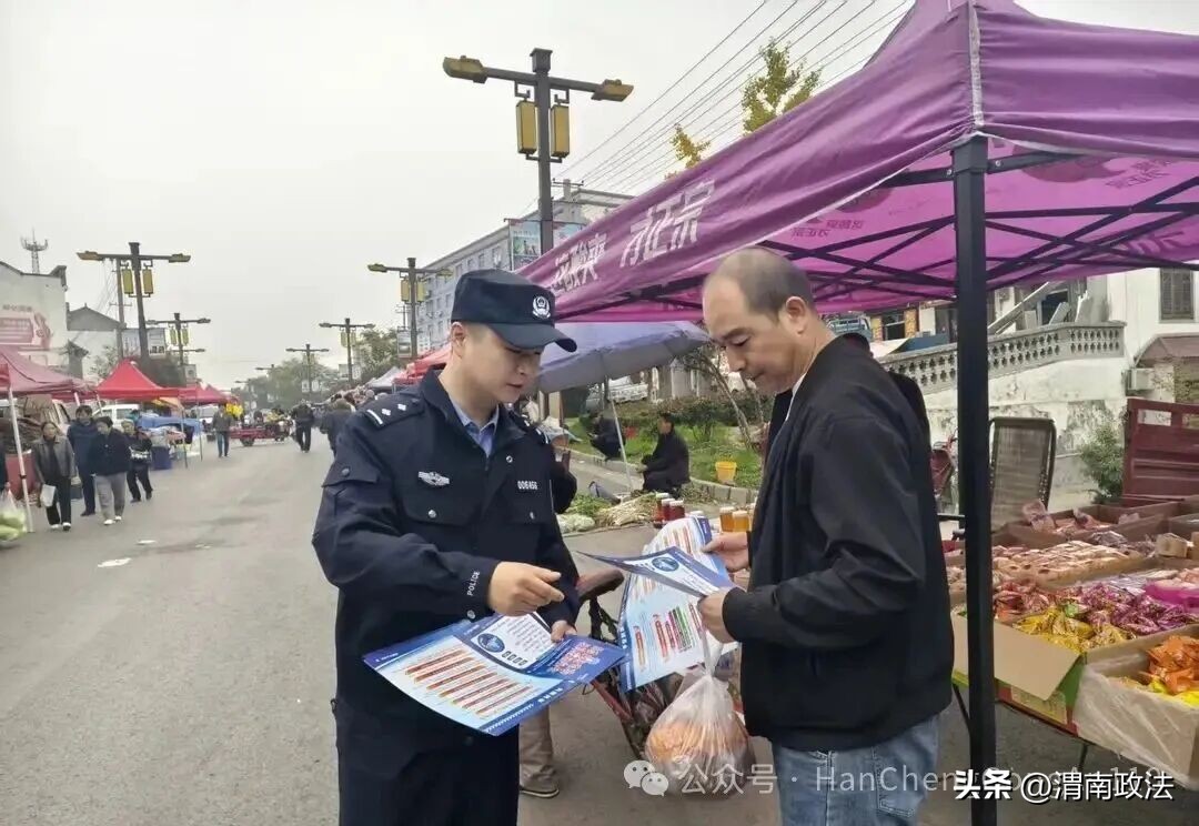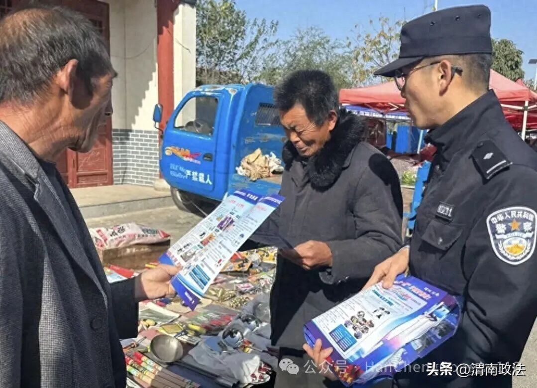 针对乡镇留守老人、商户居多,信息获取渠道相对单一,易成为电信网络诈骗侵害对象的特点,韩城公安精准施策,将反诈宣传阵地前移至热闹的集市。每逢赶集日,各派出所民警手持精心制作的宣传单页,穿梭在摊位之间,用带着“陕味”的方言,结合近期我市多发的诈骗类型,进行“靶向”讲解。