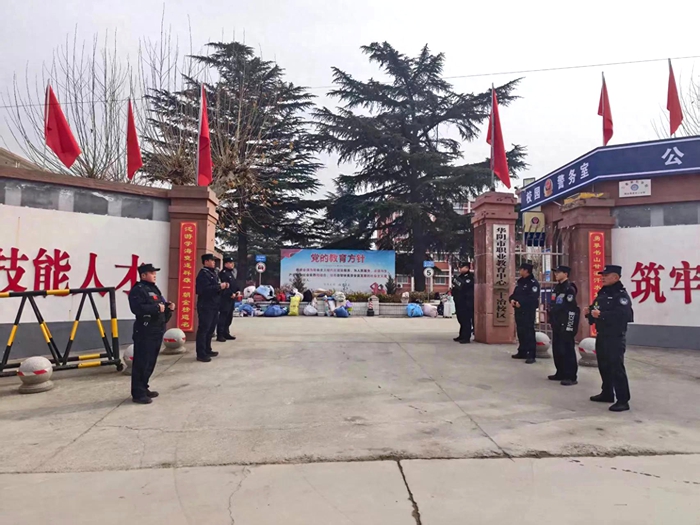华阴公安华山派出所全力保障华阴市职教中心放假日校园安全暨离校护学。