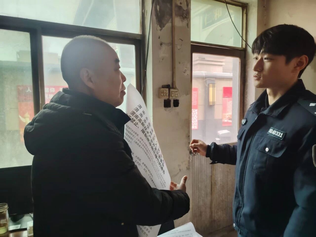 “禁止燃放烟花爆竹,请您知晓并遵守!”近期,这样的声音在临渭区街头巷尾随处可闻。分局坚持将宣传引导作为首要环节,努力让“禁燃禁放”成为社会共识。分局统一制作宣传音频、印制禁燃禁放通告、制作宣传横幅,各派出所发挥社区警务队的职能优势,民警化身“宣传员”,线上通过警民联系群、社区微信群、物业群等渠道,密集发布禁放规定、安全提示和倡议书,线下则深入居民小区、社区、村组、学校、商铺广泛张贴通告、悬挂横幅、发放宣传资料,面对面精准宣传。尤其注重对婚庆公司、酒店、沿街商铺等重点群体的告知提醒,引导市民自觉遵守规定,选择电子鞭炮、喜庆音乐等文明低碳方式表达喜悦之情。