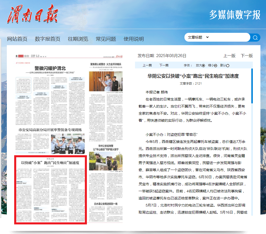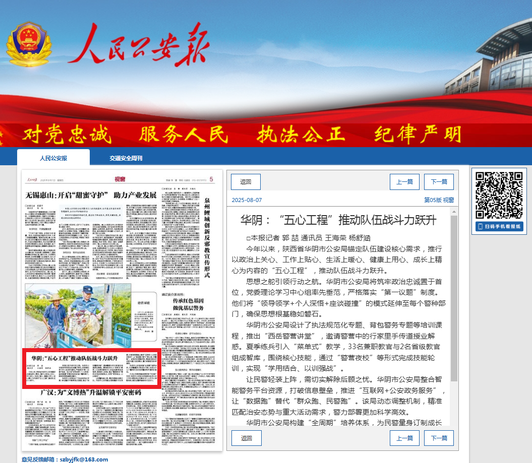 坚持宣传引领、守正创新,聚焦重要时间节点和专项行动,精心策划“致敬警察节”“平安年 警常在”“护航开学季”等主题宣传活动,深度融合华阴地域特色,整合警内警外媒体资源,实现全媒体推送、全方位覆盖。全年在各级新闻媒体平台发布视频、图文等宣传信息1007余篇,其中中央级19篇、省级293篇、市级88篇,《人民公安报》《渭南日报》先后刊发“华阴:‘五心工程’推动队伍战斗力跃升”“华阴公安以快破‘小案’跑出‘民生响应’加速度”等特色报道,收获群众广泛好评。围绕“华山砺剑”“十大行动”“金盾护苗”等专项行动,定期召开宣传策划会,依托公安自媒体平台,全方位展示打击整治成效、回应社会热点、提振群众信心,其中“华山砺剑”专项行动系列宣传,在省级以上主流媒体刊稿290余篇,位居全市前列,用声音传递公安温度,用镜头定格忠诚担当,凝聚起平安建设强大合力!