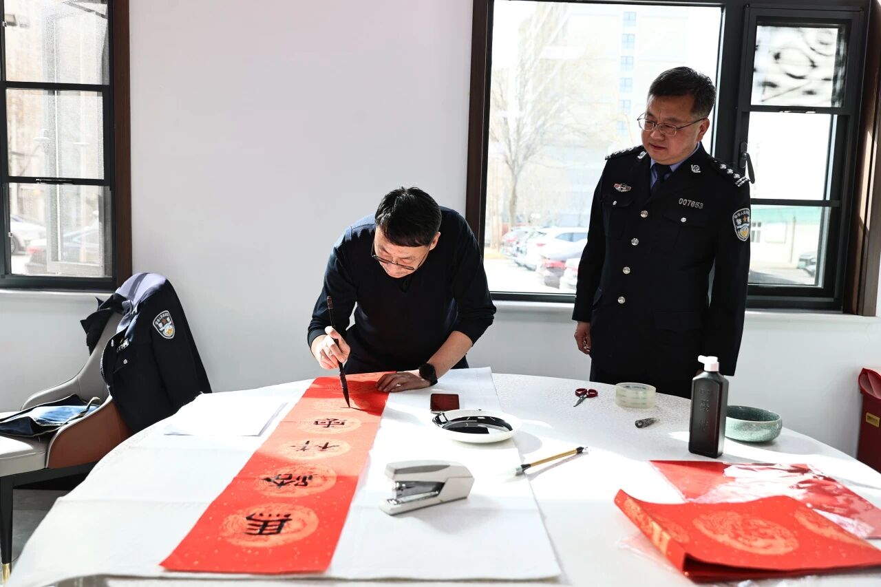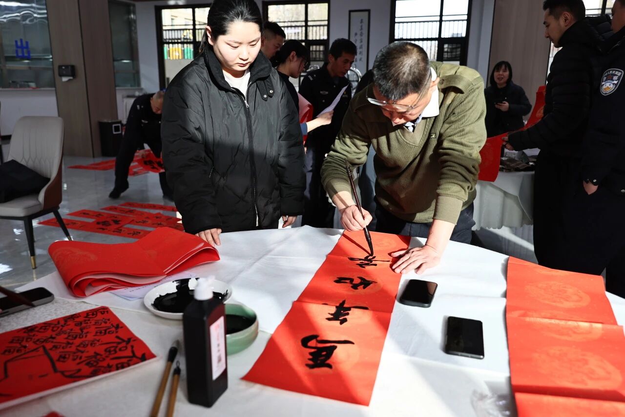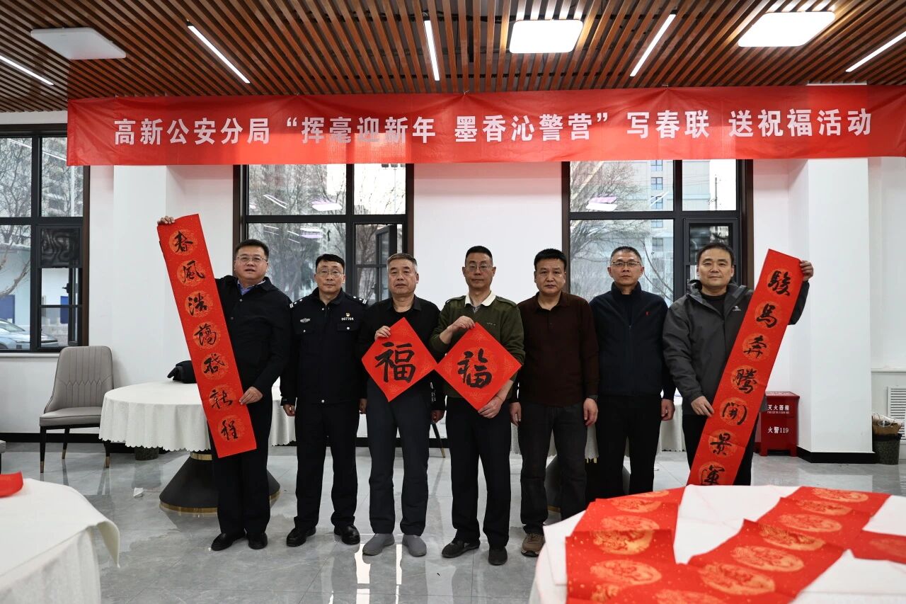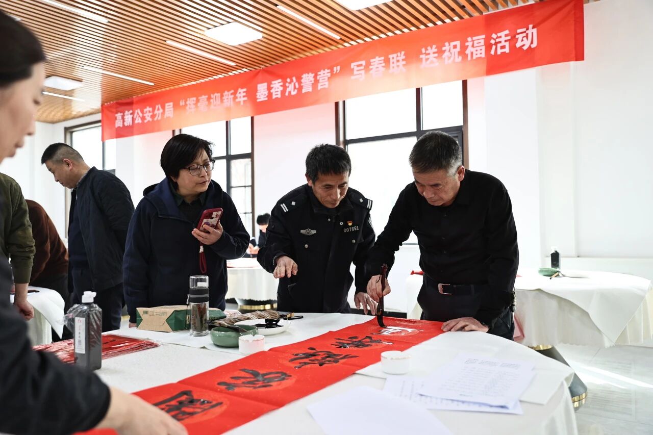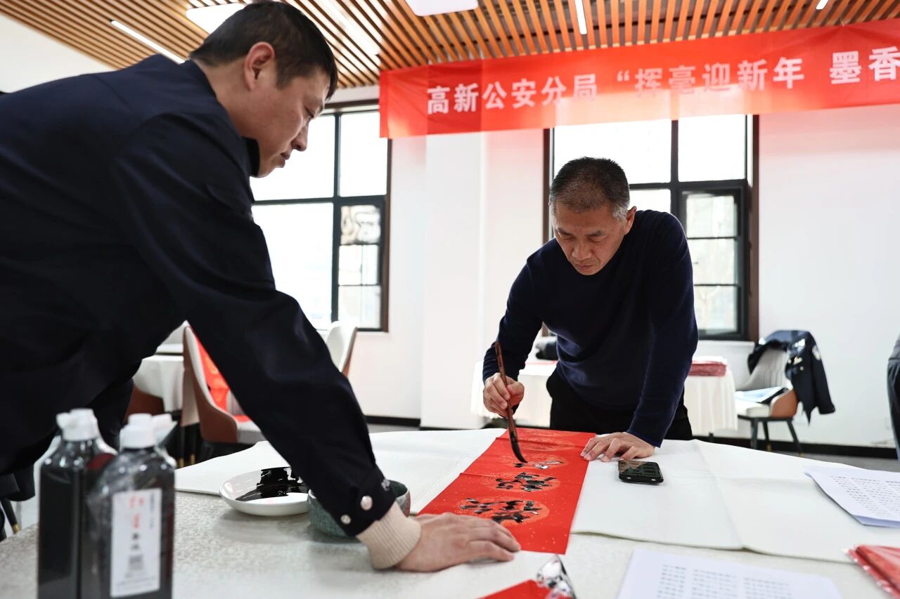 马年新春来临之际,为活跃警营文化氛围,传递分局党委温暖,2月10日,高新公安分局组织开展“挥毫迎新春、墨香沁警营”写春联送祝福活动,特邀分局书法专长的民警代表现场书写,以笔墨寄心意,以红纸传温情,为即将到来的春节增添一份独具警营特色的文化韵味。
