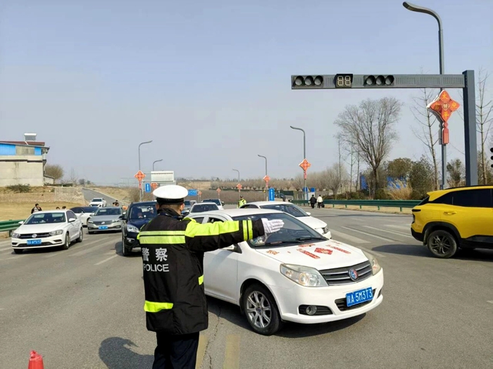 临渭交警全力保障渭桥路返程通行安全。