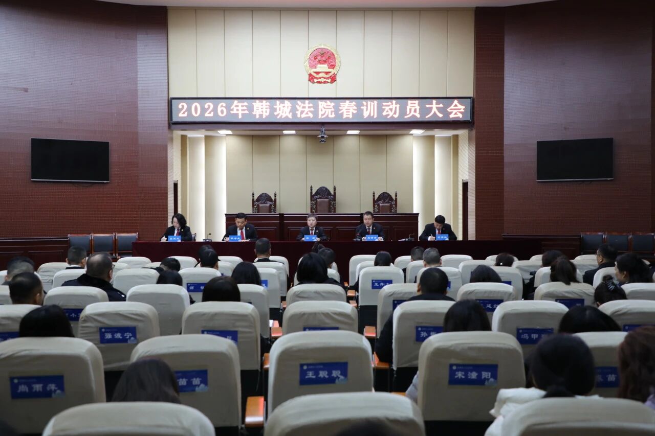 2月24日,韩城法院召开2026年“锤炼作风提效能 凝心聚力建新功”主题春训动员大会。院班子成员及全体干警参加会议。