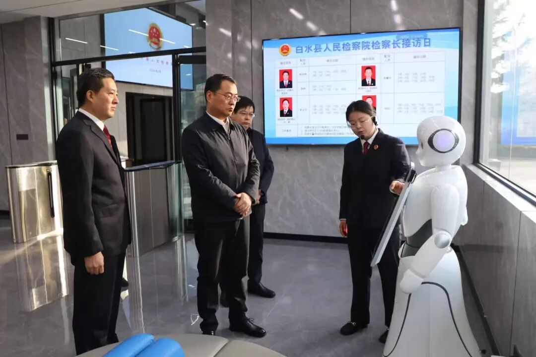 3月6日,渭南市检察院党组书记、检察长肖力波率调研组赴白水县检察院调研。先后观看了白水检察工作专题片,实地察看了12309检察服务中心、检察听证室、档案室等场所,了解检察“双进”、品牌建设等工作,并召开座谈会听取汇报。