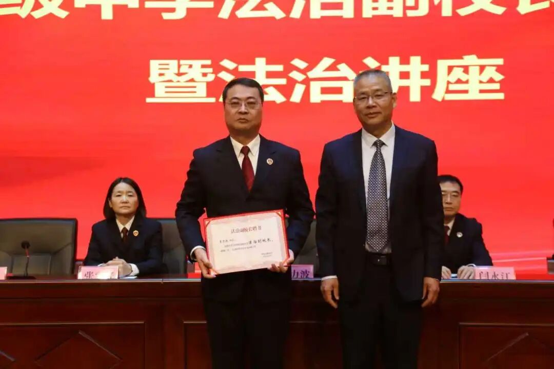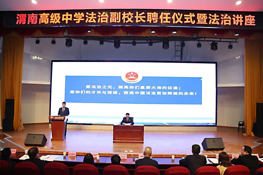 月11日,渭南市人民检察院党组书记、检察长肖力波受聘担任渭南高级中学法治副校长,并以《沐法治之光 赴星辰大海》为题作法治讲座。渭南高级中学党委书记冯明军致辞并颁发聘书,校长石克礼主持聘任仪式,300余名师生及家长代表参加活动。