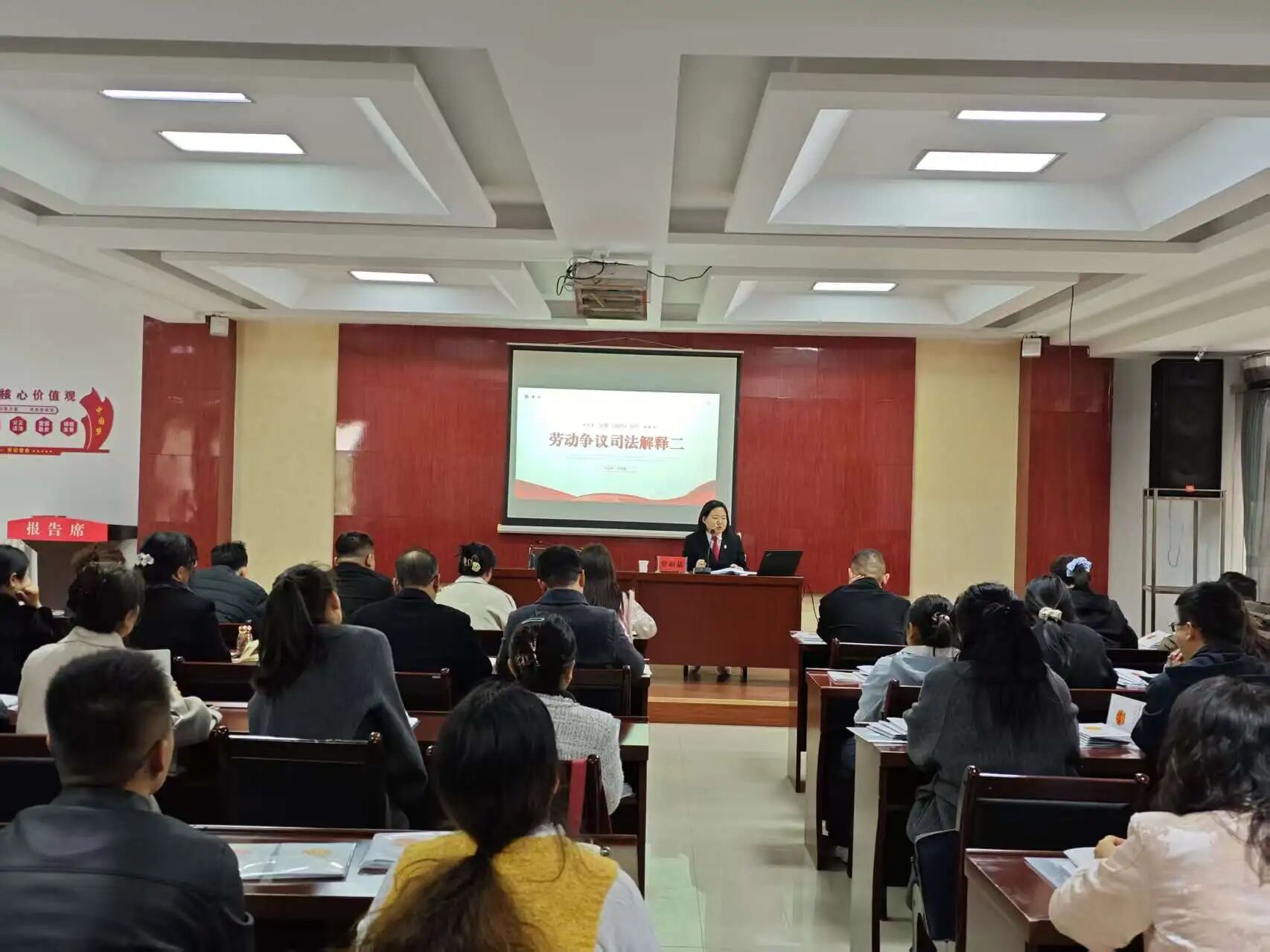 工会是职工权益的“代言人”、劳资和谐的“协调人”、法治宣传的“宣传员”、矛盾化解的“调解员”。培训现场,民一庭副庭长贾靖晶立足法官视角,结合《中华人民共和国工会法》《中华人民共和国劳动合同法》《中华人民共和国劳动争议调解仲裁法》《陕西省工会劳动法律监督条例》和司法实践,聚焦劳动关系认定、劳动合同管理、工伤认定与维权、劳动争议化解四大核心问题,通过以案释法、以理析规的方式,为参会工会干部提供了务实管用的实务指引。随后,她详细讲解了工会在劳动用工中的监督职权,重点解读了《最高人民法院关于审理劳动争议案件适用法律问题的解释》(一)(二),并围绕工会维权、职工权益保障实操要点及劳动纠纷预防与处置典型案例展开分析,为工会干部精准维护职工合法权益、构建和谐劳动关系提供了清晰路径。