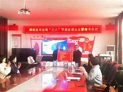 2025年3月7日,蒲城县司法局走进尧山镇六合村玉珂染坊非遗体验馆,举行送法进企业暨赠书宣讲活动。
