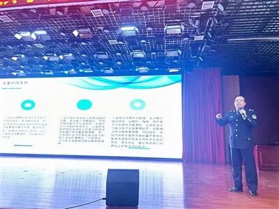 2025年9月23日,法治副校长、县司法局副局长李少军走进城南学校讲授法治课。