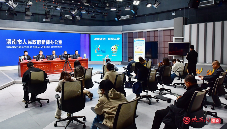 渭南市政府新闻办召开陕西省第十八届运动会新闻发布会。记者 罗娜 摄