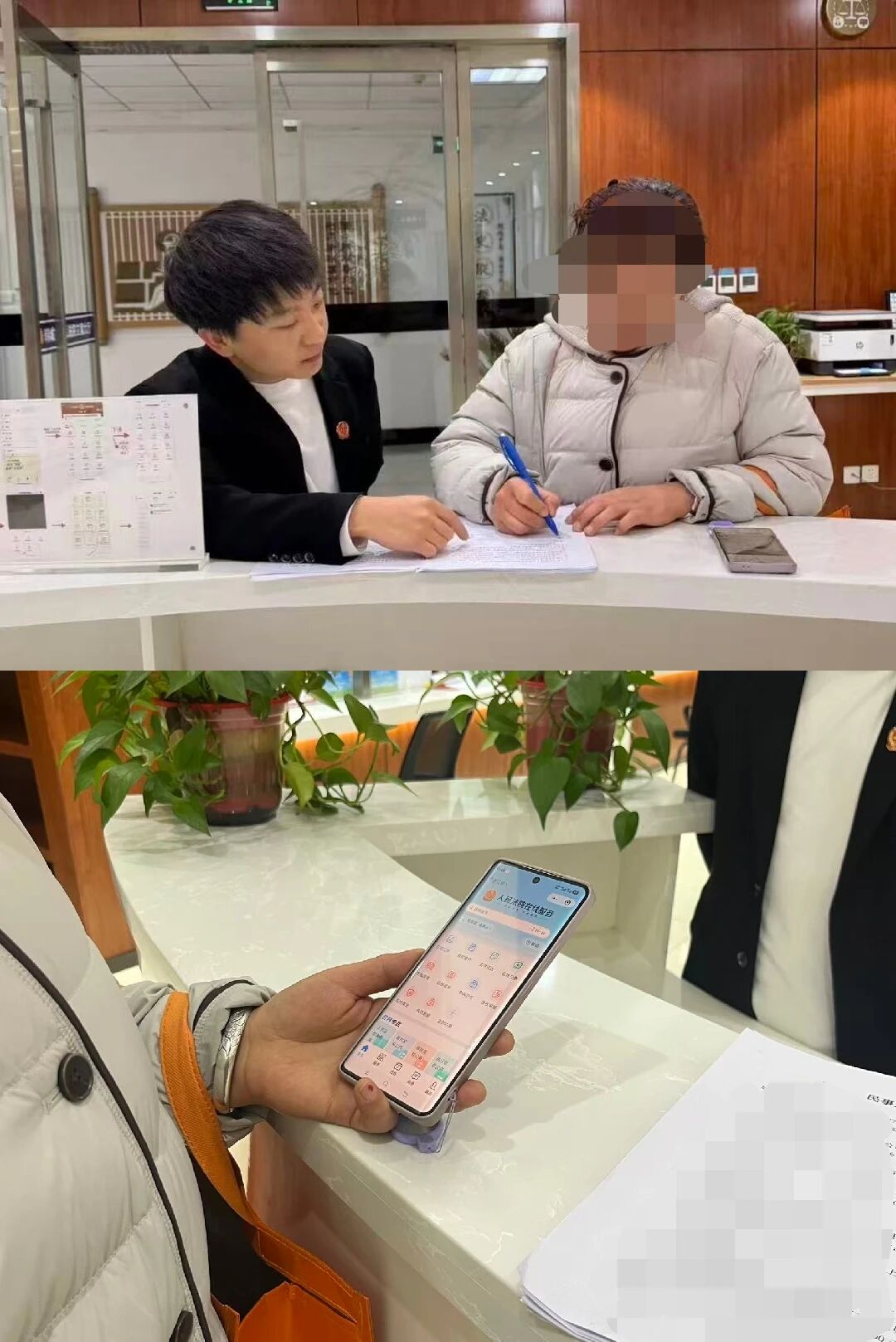 面对使用智能手机不娴熟的群众,工作人员会特意放慢语速,一步一教,从注册登录到信息填写、再到材料上传,每一步都耐心讲解,直到立案申请完成提交。不厌其烦的指引,化解了群众的焦虑情绪,专业服务让网上立案不再难。同时,诉讼服务大厅专门配置了电脑和打印机,群众不仅可以通过手机进行网上立案,还可以通过电脑上传材料,提交立案。真正让“数据多跑路,群众少跑腿。”落到实处。