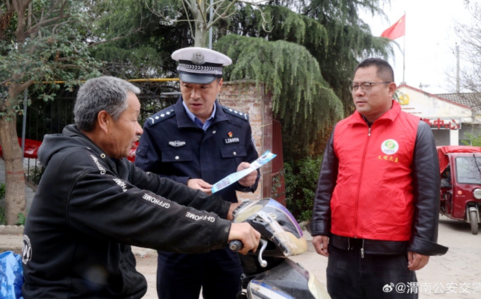 大荔交警联合包村干部开展春季交通安全宣传活动。