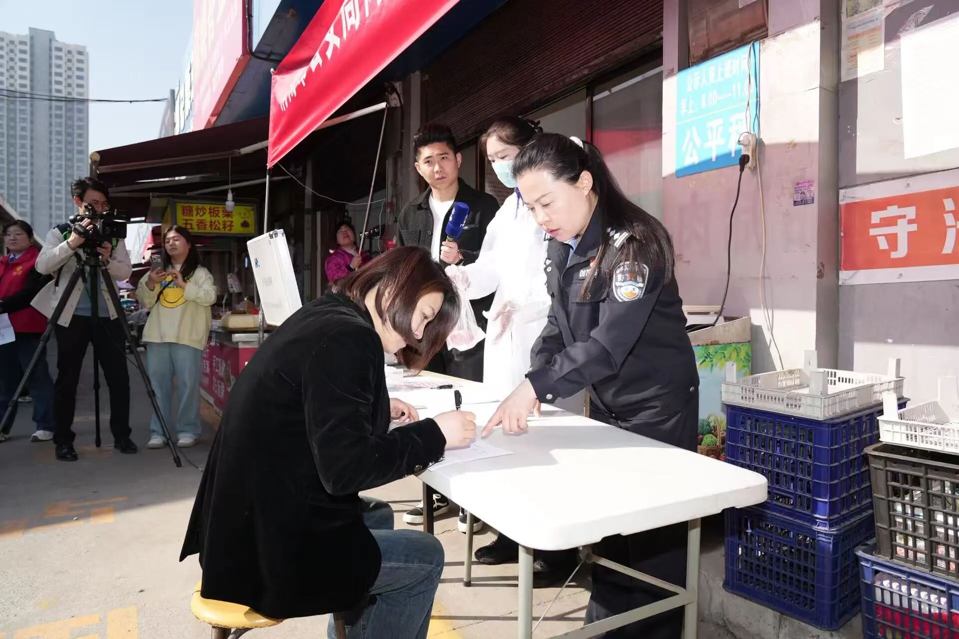 与此同时,食品安全宣传同步升温。民警通过悬挂横幅、发放彩页、在小区公示栏张贴通告等多种形式,向过往群众和线上观众普及食品安全法律法规,手把手讲解过期变质肉、注水肉、假劣肉的识别技巧,耐心传授肉制品选购、储存的实用方法,现场解答群众提出的各类食品安全疑问,切实提升大家的食品安全防范意识和自我保护能力。