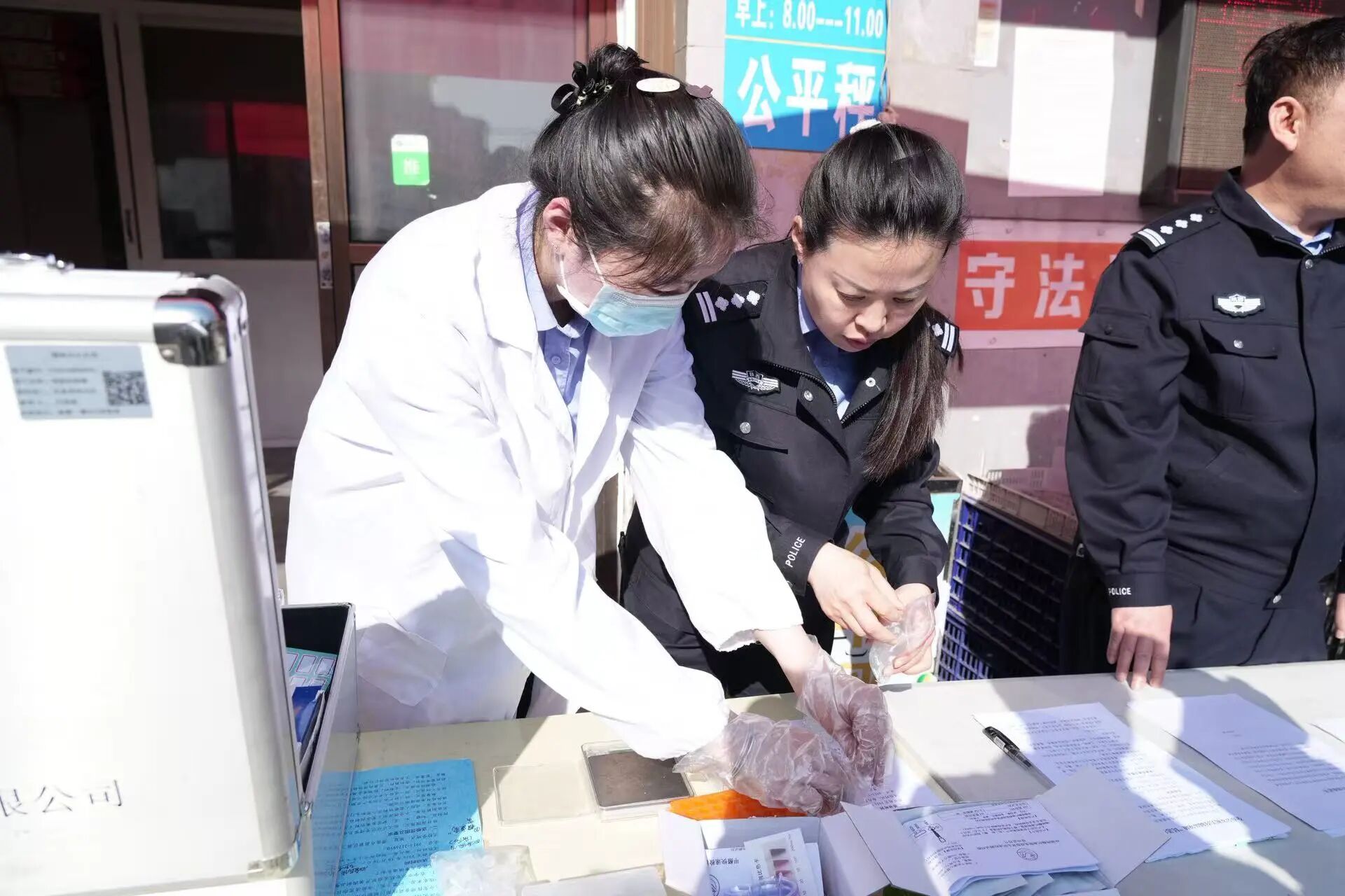 活动现场,民警与社区工作人员分工协作、默契配合,围绕群众日常消费频率最高的生鲜肉、酱卤肉、火腿肠等肉制品品类,严格按照“群众送样—公安快检—现出结果”的流程,规范执行“登记、取样、检测、封存”全环节操作,确保检测结果真实可靠。